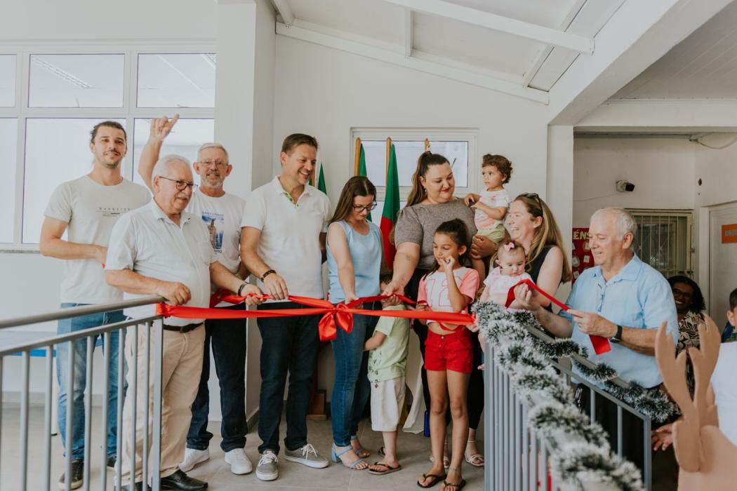 Já na área da educação, a EMEI Lajeadinho recebeu uma significativa expansão de 190 m², contemplando duas novas salas de aula, solário, banheiros e pátio coberto. As melhorias vão proporcionar melhores condições de ensino, ampliar o atendimento às crianças e aprimorar o ambiente escolar. O investimento total foi de R$ 560 mil, sendo R$ 452 mil provenientes do FNDE e R$ 108 mil de recursos próprios do município.