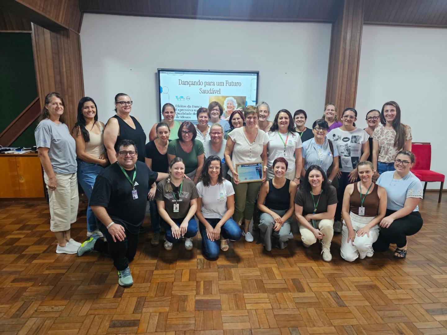 Outro ponto alto da manhã foi a apresentação dos dados do artigo científico “Efeitos da Dançoterapia Expressiva na Qualidade de Vida de Idosos nos Municípios do Vale do Taquari”, apresentado no Congresso Internacional de Educação Física em janeiro deste ano.